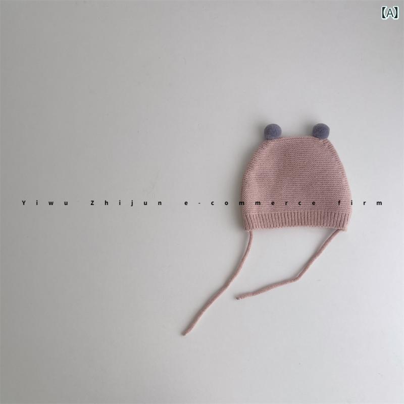 ベビーウェア かわいい 韓国 小さい ファーボール ストラップ 耳保護 帽子 秋冬 無地 ベビー ニット 帽 男子 女子用 ウール