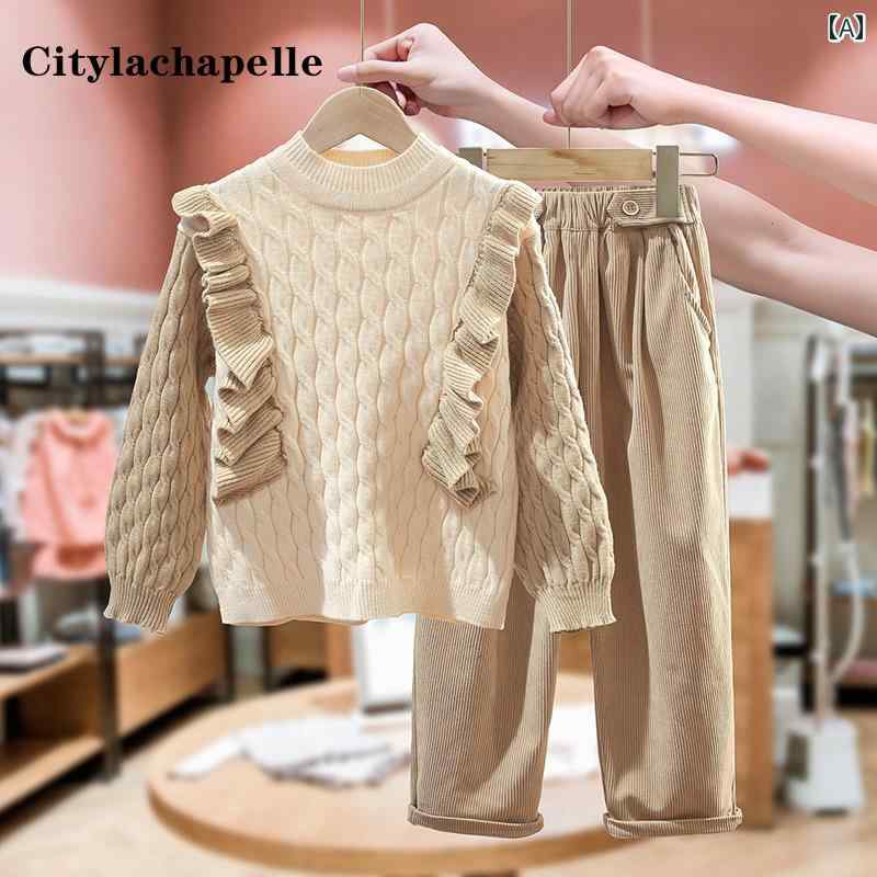 ジャケット パンツ キッズ アウター 子供服 ガールズ 春秋 スーツ ケーブル プルオーバー セーター ツーピース キャンパス