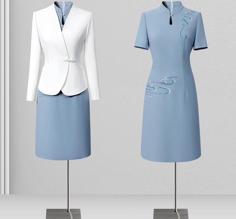 受付 制服 ワンピース レディース おしゃれ 夏 ビジネスウェア 女性 黒 中国 チャイナ 美容 営業 スカート ネイビー