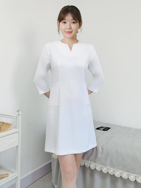 春夏 レディース エステ 作業着 レディース 七分袖 ドレス スカート 美容室 ユニフォーム 技術者制服 半袖 保健センター フロント 受付