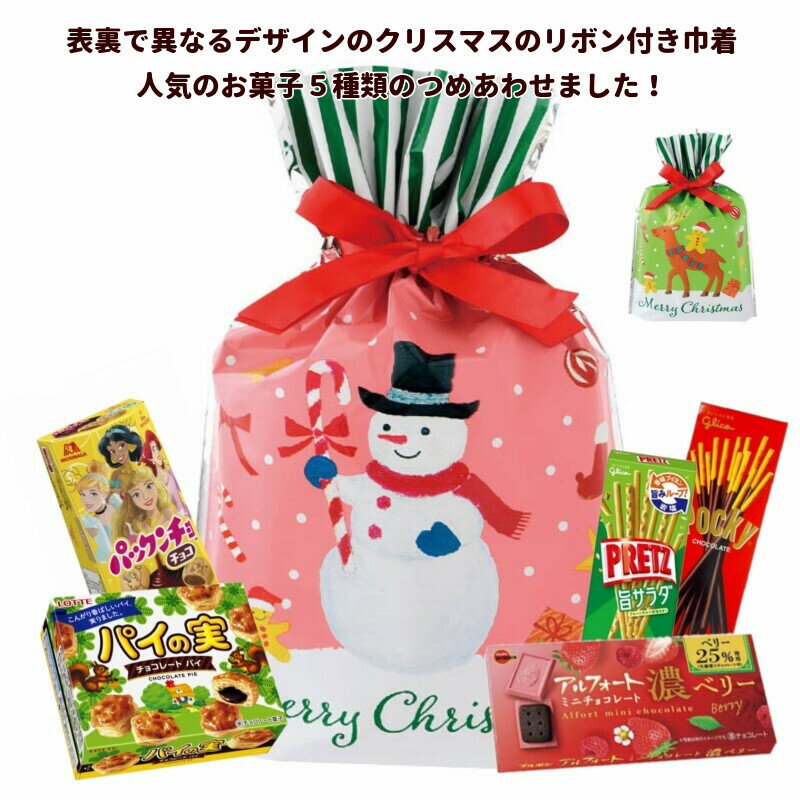 【クリスマス】【税込750円】クリスマス リボン付きギフトバッグ(中)お菓子8点セット