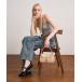 裾に向かって広がるフレアラインが、気になる腰まわりやヒップをさりげなくカバーし、女性らしいシルエットに。カジュアルな素材ながらフェミニンな印象を演出します。グログランのリボンテープが上品なアクセントになり、先端にあしらったプレートが高見えをプラス。大人カジュアルにぴったりの一枚です。