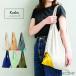 バックの端に縫い付けられた三角の部分にクシュクシュッと収納できるエコバッグ、使わない時は、本体を収納することでコンパクトで持ち運びに便利です。