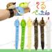 伸ばしたバンドを腕などに乗せて軽く叩くと、くるくる巻き付きます。