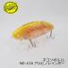 元気に泳ぐ、赤ちゃんカエル!【E001 アルビノ】水面系の白は、ブラックと双璧をなす定番実績色。アングラーからの視認性に優れ、バスからはカエルの白い腹のように見せます。ゴールドマイカを入れ、やや黄色味を帯びたナチュラルな色合いに仕上げました。