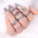 指輪 リング アクセサリー レディース 8個セット セットリング シルバー リーフ 象 花 平打ち ストーン ビジュー ジュエリー アクセ ユニセックス