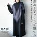 ワンピース 煌めくVラインで魅せる すっきり上品ニットワンピ 長袖 ロング丈 低身長 細魅せ効果 小顔効果 上品 オケージョン お出掛け 華やか 春 秋 冬 秋冬 ブラック ブルー