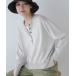 キーワード:ブラウス シャツ レディース ノーカラー レース 長袖 無地 フェミニン 秋 大人カジュアル