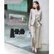 スーツ レディース オフィス フォーマル ドビー素材 3点セット カラーレス ジャケット +フレア袖 ブラウス +リボン付ワイド パンツ S/M/L ニッセン nissen