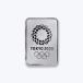 銀の金属色を生かしてデザインした長方形のピンバッジです。東京2020オリンピックエンブレムが凹凸で表現されています。