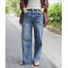 キーワード:ジーンズ デニム デニムパンツ レディース ストレート フルレングス レギュラー ワイドパンツ 無地