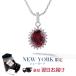 豪華に赤く輝く大粒の人工ルビーのまわりにczダイヤモンドをあしらったゴージャスなネックレス。同シリーズのピアスとセットでのご購入もおすすめ。7月誕生石。
