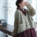 ブリードの森 クルミの切り替えカーディガン レディース ニットカーディガン ボレロ 羽織り 長袖 Vネック ローゲージ ウール混 毛混 トップス