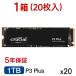 【20個セット】Crucial 1TB P3 Plus NVMe PCIe Gen4x4 SSD M.2 2280 R:5000MB/s W:3600MB/s CT1000P3PSSD8 5年保証・翌日配達 グローバルパッケージ
