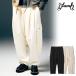 glambが定番とする構築的なワイドシルエットを再考、ミリタリーのディテールを掛け合わせてルーズなボトムススタイルを提案するStructure Tuck Cargo Pants。ハリと落ち感を備えたレーヨン混ポンチ生地のボディは、腰元に取った2タックが立体的な陰影を描くワイドシルエット。