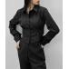 ブラウス シャツ 「LVEU.」ウエストデザインクロップドシャツ / トップス シャツ ブラウス タイト タック 長袖 クロップド ショート ブラック