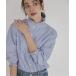 キーワード:ブラウス シャツ レディース スタンドカラー ストライプ フリル 長袖 無地 WEB限定 ZOZO限定 ガーリー キレイめ パーティー 結婚式二次会 春 卒園式 大人カジュアル