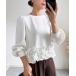 キーワード:tシャツ レディース クルーネック フリル 長袖 無地