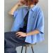 キーワード:ブラウス シャツ レディース ショート丈 レギュラーカラー ロゴ ワンポイント 刺繍 半袖 キレイめ デート ピクニック レジャー ベーシック 大人カジュアル 別注 コラボ 旅行