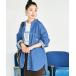 キーワード:ブラウス シャツ レディース スタンドカラー デニム ロング丈 長袖 無地 WEB限定 アメカジ ベーシック 公園 秋 大人カジュアル 定番 旅行