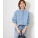 キーワード:ブラウス シャツ レディース スタンドカラー デニム フリル 洗える 長袖