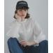 キーワード:ブラウス シャツ レディース コットン スタンドカラー フリル 長袖