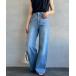 キーワード:ジーンズ デニム デニムパンツ レディース ストレート フルレングス レギュラー ロゴ ワイドパンツ ワンポイント アメカジ ノームコア ピクニック レジャー 公園 大人カジュアル 旅行