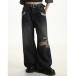 商品名:ワイドシルエット サイドベルト付き ダメージ加工デニムパンツ NZK6133【MASONPRINCE】