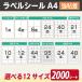 ラベルシール A4 1面 4面 6面 10面 12面 21面 24面 40面 44面 95面 FBA 対応 2000シート 強粘着 ノーカット 宛名 配送 ラベル シール