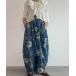 キーワード:ジーンズ デニム デニムパンツ レディース ハイウエスト フルレングス ワイドパンツ 花柄