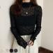 メール便送料無料 シースルー シアートップス カットソー レディース メロウフリル フリルネック 透け レース タートルネック 長袖 トップス 春 夏 秋 セットインスリーブ メッシュ生地 お洒落 可愛い 薄手 重ね着 レイヤード 無地 シアーシャツ シアーブラウス 黒 白