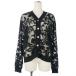 ミズイロインド mizuiro ind クロシェットネット シアー カーディガン Vネック フロッキー 花柄 シースルー ブラック 黒 レディース