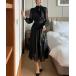 キーワード:ドレス フレア ミモレ丈 長袖 無地