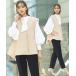 商品名:【3点セット】バスケットツイードジレ&タイパールチェーンボリューム袖ブラウス&テーパードパンツ3点セットアップ 洗える