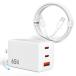 ・???PD充電器65W+3つのポート付き革新的なデザインの充電器は、2つのType-Cポートと1つのUSB-Aポートを搭載し、様々なデバイスの充電ニーズに完璧に対応。pd充電器は新たにアップグレードされ、どのCポートでも出力65Wで、MacBok Airを約2時間、MacBok Proを約1.5時間という短時間でフル充電することができます。さらに、この65W 充電器は従来のusb充電器よりも約6倍の高速充電を実現しました。わずか30分の充電でMacBok Air 13を0〜51%、For iPhone17を0〜60%まで急速に充電することができます。フル充電時間は40分以上も短縮され、毎日少なくとも1時間以上の時間を節約できます。PD65Wのパワフルな出力は、デバイスに短時間でエネルギーを供給し、快適でスムーズなデジタルライフをサポートします。