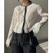 キーワード:ブラウス シャツ レディース ショート丈 ドット ノーカラー 長袖