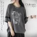 トップス カットソー カジュアルにもきれいめにも振れる大人のためのデザイントップス ドルマン 花柄 プリント 五分袖 チャコールグレー 春 夏 秋 春夏