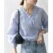 商品名:SHIPS any:〈手洗い可能〉ストライプ フリル Vネック シャツ ブラウス