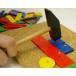 木製の色板をトンカチでトントン。パターンを作って遊びます。