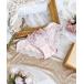 サイドのフリルが可愛らしいデザイン。バックの身生地は、肌あたりなめらかな素材です。縦横にストレッチ性があり、ヒップにフィットします。バック足口はレース付きで後ろ姿も華やかに。