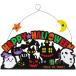 ハッピーハロウィンのロゴ入り木製プレート。おばけや黒猫、コウモリにパンプキン、可愛いハロウィーンキャラクターが勢ぞろい!楽しい雰囲気が広がります♪ウェルカムサインに最適です。