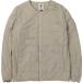 通気性コーティングを施した薄手のストレッチタフタの表地に、中綿と裏地を一体化した高機能トリコット生地「オクタCPCP」をライニングした、ノーカラーデザインのウィンドシェルジャケット。オクタは中空で8片に別れた特殊構造の繊維で多くのデッドエアを含み、軽量かつ高い保温性を実現。通気性にも優れ、着用したままアクティビティを行っても蒸れにくく快適です。フロントドットボタンのシンプルなデザインで、秋から春先まで3シーズン対応の汎用性の高いアイテムです。放電テープを縫い込んだ帯電防止仕様。