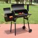 【温度監視と十分なスペース】このスモーカーグリルには、調理中の温度を監視するための蓋に取り付けられた温度計が付いています。外側の棚には、グリルツールや調味料を簡単に収納できます。