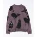 商品名:アニマルパターン 総柄ジャガード ルーズニット プルオーバー 黒猫 クロネコ くろねこ