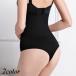 ハイゲージパワーネットを使用したハードタイプのショートガードルです。腹部のパネルとサイドからヒップにかけての二重サポートでボディラインをコントロールします。