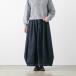 フロントタックと裾のダーツで生まれる、ふんわりとした立体的なシルエット。ヒップや脚のラインを自然にカバーしてくれるので、気負わず穿けるのも嬉しいポイントです。ウエストはリラックス感のあるゴム仕様。バックにはスリット入りで足さばきも快適です。