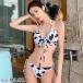 カウ柄ホルターネックビキニ2点セット(水着・ビーチウェア)。個性的なカウ柄は太めのバックベルトで安定感があり、ホルターネックのギャザーでバストを寄せ綺麗に見せてくれます。ハイカットのショーツはヒップラインを大胆に露出し、脚長効果があります。