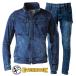 【送料無料】EVENRIVER イーブンリバー USD907+USD902 パウダーブルー ストレッチ デニム 上下セット S~5L ブルゾン 刺繍 作業服 作業着 秋冬
