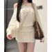 キーワード:ワンピース ショート ミニ丈 タイト ビジュー 長袖 無地