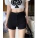 キーワード:ジーンズ デニム デニムパンツ レディース ショートパンツ スキニーパンツ ハイウエスト 無地